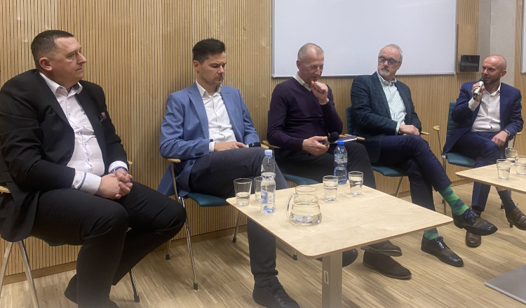 W dyskusji, którą prowadził Paweł Zagrajek udział wzięli przedstawiciele firm związanych z cargo lotniczym: Piotr Okienczyc - prezes zarządu Welcome Airport Services, Paweł Kaźmierczak - prezes zarządu 4RCargo, Bartosz Stolarek - prezes Avsec.pl Sp. z o.o. oraz Jarosław Rogowski, ekspert ds. cargo lotniczego, pracownik CPK, potencjalni pracodawcy zainteresowanych studentów.